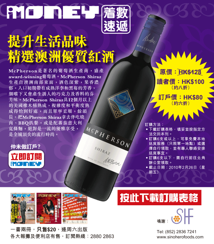 Award winning shiraz mcpherson featured in leading financial magazine Imoney on topical wine