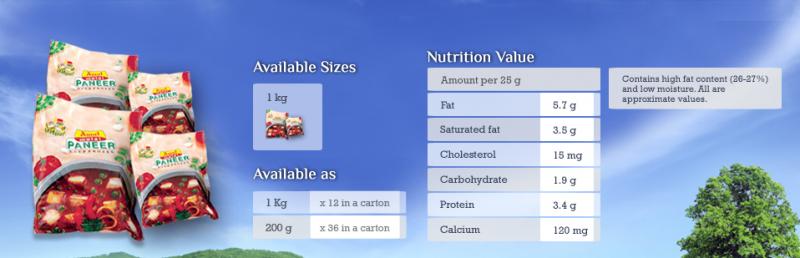 Higher fat content (26-27%) and lower moisture content than other loose Paneer available in the market. This gives Amul Malai Paneer smooth, uniform texture and softness that most consumers desire.