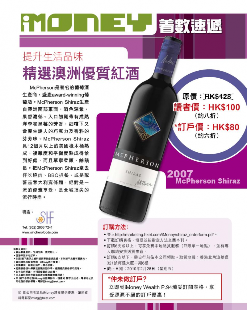 Award winning shiraz mcpherson featured in leading financial magazine Imoney on topical wine
